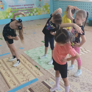 В детском саду "Солнышко" прошел кружок "Звезды Олимпа", дети делали гимнастическую разминку перед разучиванием танца. Разучивали элименты танца: приставные шаги повороты.